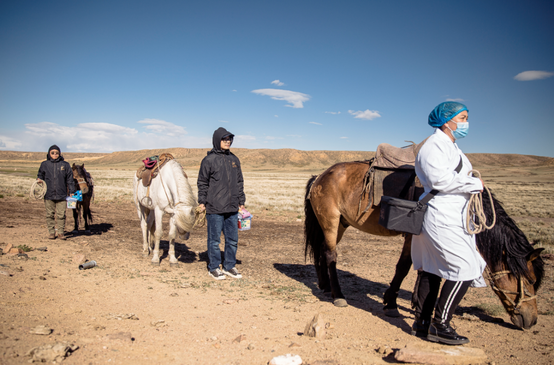 吉木乃的地理气候决定当地游牧生活方式绵延至今。每年3月20日前后,牧民转战春秋牧场放牧,约摸5月20日又转至夏季牧场。100多户300余名牧民年复一年转场,全县41名村医年复一年骑马随行,为牧民保驾护航。阿尔申古丽•协力扎提就是其中一位骑马村医。